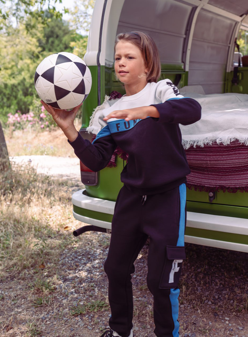 Άνετο και παιχνιδιάρικο παιδικό σετ φόρμας για αγόρια 2–6 ετών από τη συλλογή Actionsportswear. Περιλαμβάνει φούτερ με κουκούλα σε εκρού φόντο με πολύ..